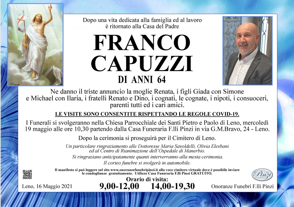 Le più sentite condoglianze alla famiglia del caro amico Franco