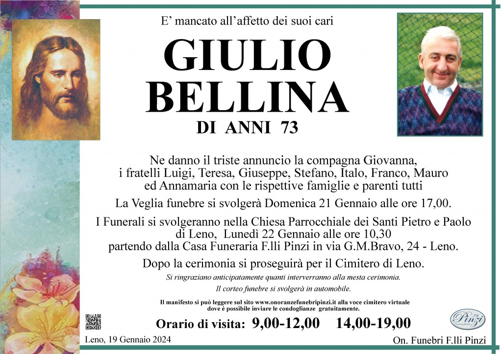 Luigi , Elvira e figli , partecipano al dolore di Annamaria e familiari per la scomparsa del caro fratello Giulio e porgono le più sentite condoglianze.