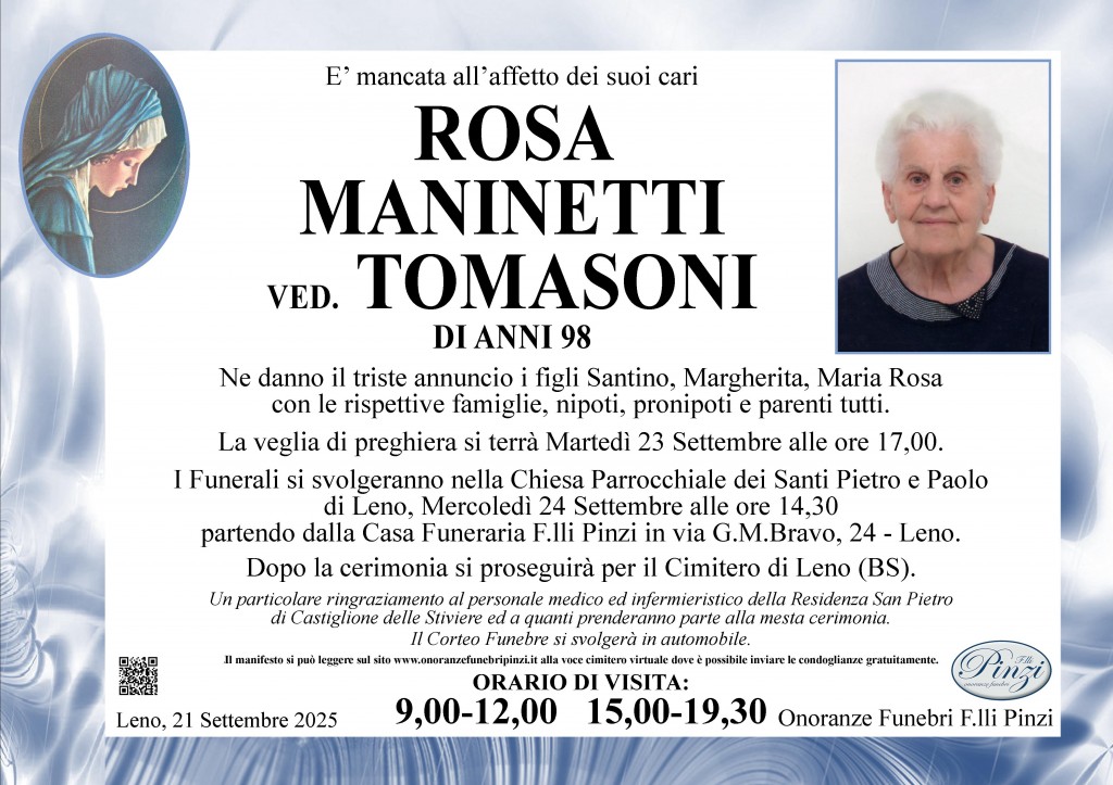 Sincere condoglianze ai parenti di Rosa da parte della famiglia Gabossi Battista