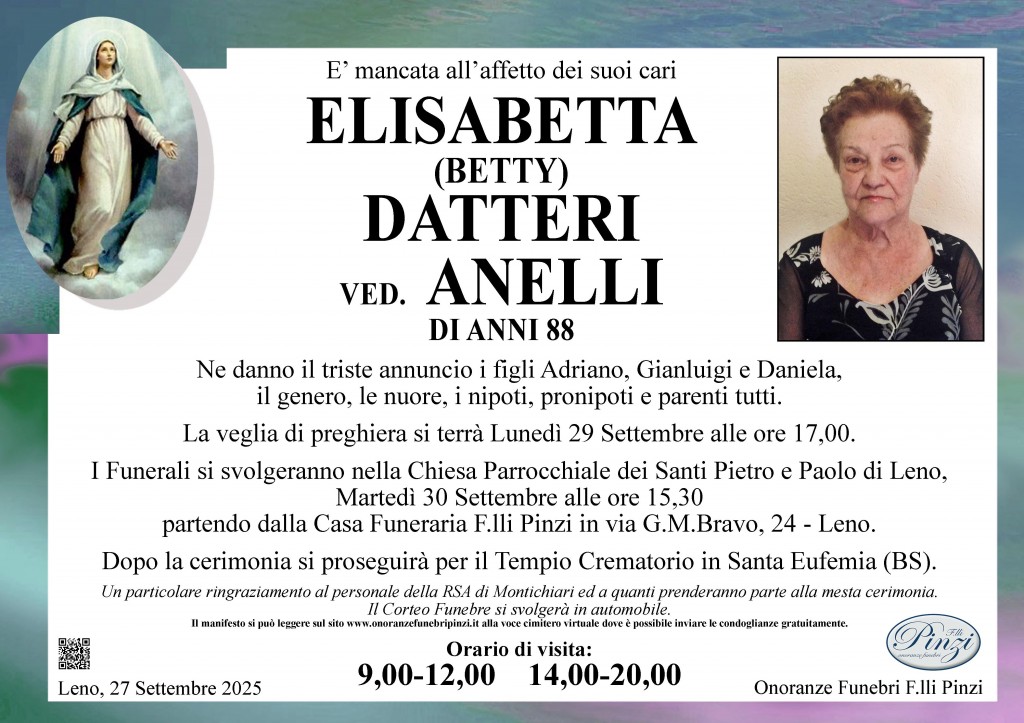 Sentite condoglianze ai figli e a tutti i famigliari della cara Elisabetta