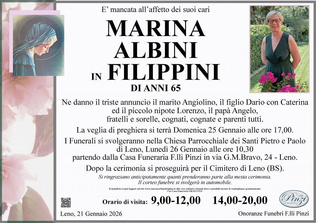 Alle famiglie Filippini e Albini porgo le mie sentite condoglianze .