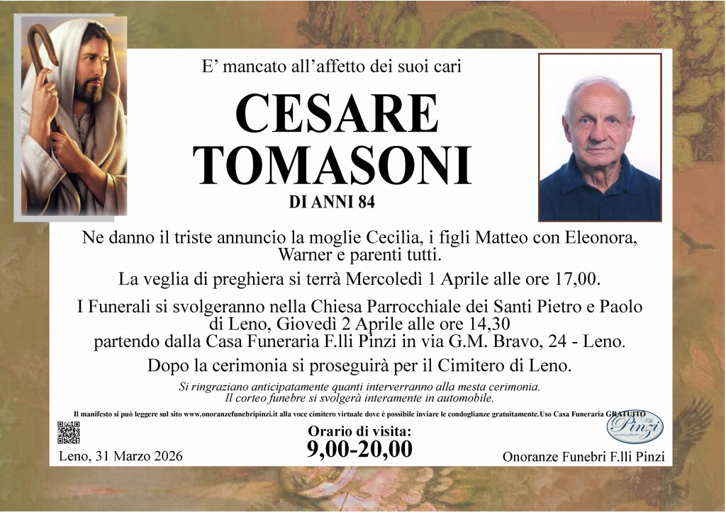 Sentite condoglianze alla famiglia Tomasoni per la perdita del caro Cesare Fam. ALLEGRI GERARDINI